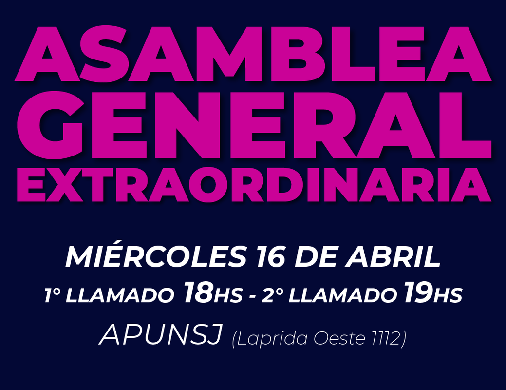 La comisión directiva de ADICUS, convoca a Asamblea General Extraordinaria para el día Miércoles 16 de abril en APUNSJ.