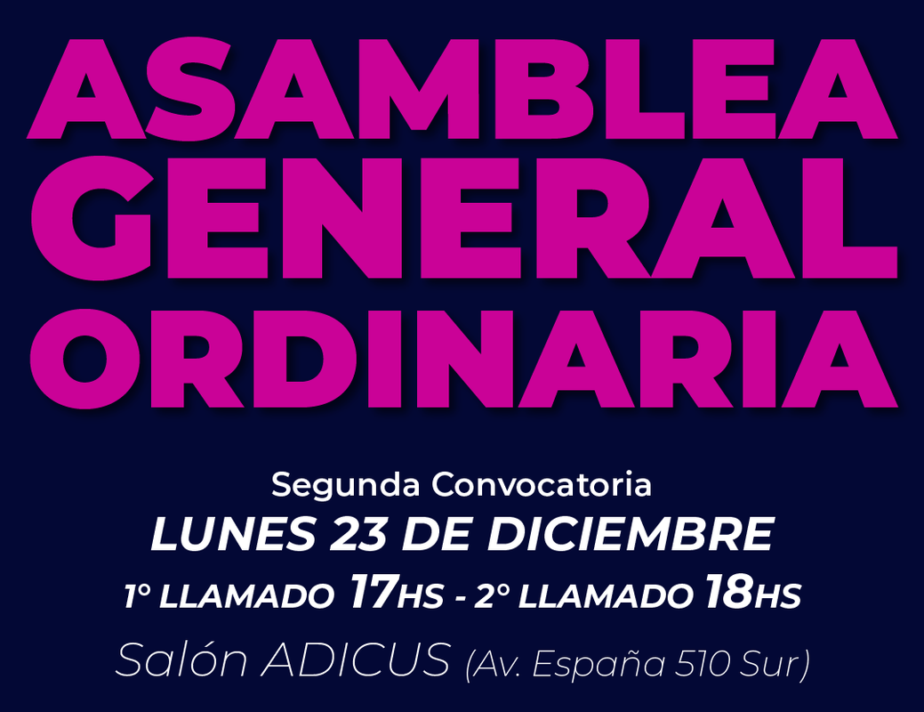 ADICUS convoca a Asamblea General Ordinaria para el día 23 de diciembre, a las 17hs. en 1° citación y 18hs. en 2° citación.