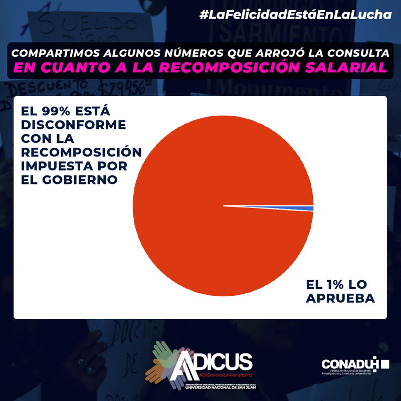 En cuanto a los números que arrojo la Consulta Digital en sí, podemos decir que el 99% de las personas que opinaron, creen que la recomposición salarial que hemos recibido es totalmente insuficiente.