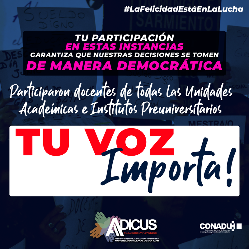 Creemos importante destacar que participaron docentes de todas las unidades académicas e institutos preuniversitarios de la UNSJ. Y apostamos a que cada vez seamos más las y los que participemos de todas las instancias democráticas de nuestro Gremio, porque eso nos fortalece y nos da la unidad necesaria para continuar. Sigamos construyendo juntos y juntas las acciones sindicales. tu participación importa!