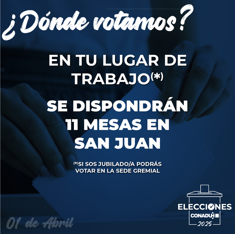 EL PRÓXIMO 01 DE ABRIL SE CELEBRARÁN LAS ELECCIONES DE CONADU HISTÓRICA EN SAN JUAN