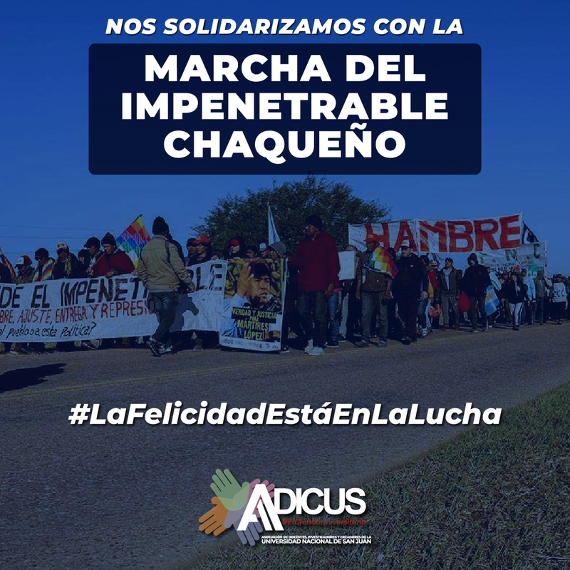 Desde ADICUS nos solidarizamos con la decisión de luchar, con esa convicción que conmueve. Es necesaria la más amplia solidaridad y unidad para que la lucha del pueblo chaqueño triunfe. Hay que romper el cerco que los grandes medios le imponen al pueblo cuando lucha y se une.